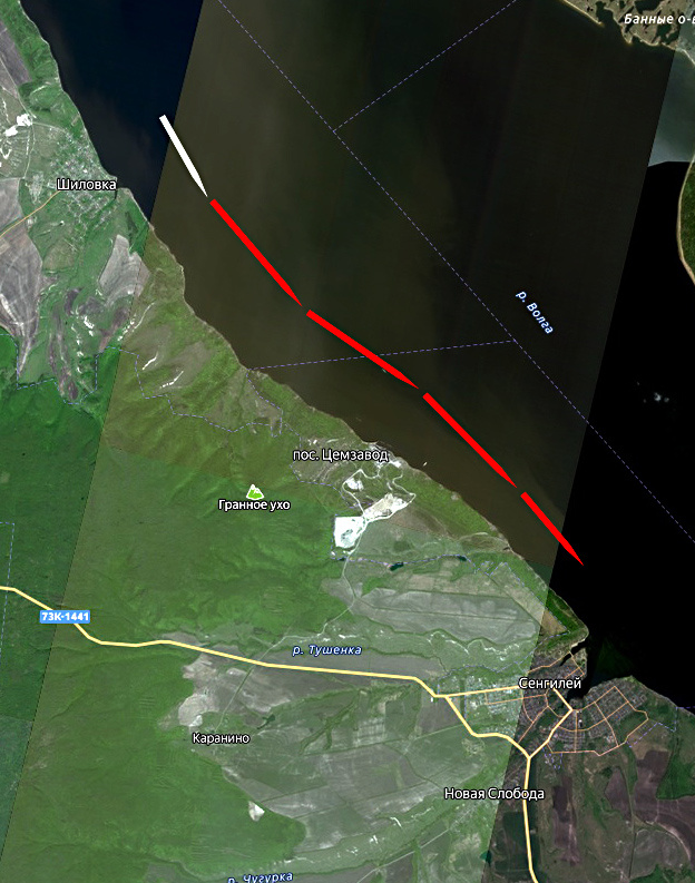 В предыдущей статье мы расстались с Вами, уважаемые читатели, у южной окраины Шиловки, отсюда и продолжим путешествие вниз по Волге в сторону Самары. На снимке, справа у подножия холма, склон которого подмыт водами Волги, видны крыши домов на южной окраине Шиловки. Расстояние от села Шиловка: вверх по течению до Ульяновска – 31 км; вниз по течению до Самары – 177 км. Панорама правого берега к югу от Шиловки. Лесистые холмы в национальном парке «Сенгилеевские горы» на правом берегу. Приближаемся к посёлку Цемзавод. На высоком берегу видна округлая вершина, полагаю, это гора Гранное Ухо, расположенная в полутора километрах (по прямой) от посёлка. Гора Гранное Ухо представляет собой останец, возраст меловых и палеогеновых пород, из которых он сложен, составляет десятки миллионов лет. Место является памятником природы и охраняется государством. На вершине горы, высота которой составляет 333,7 метра, сооружена смотровая площадка. На склоне рядом с цементным заводом находится производственна