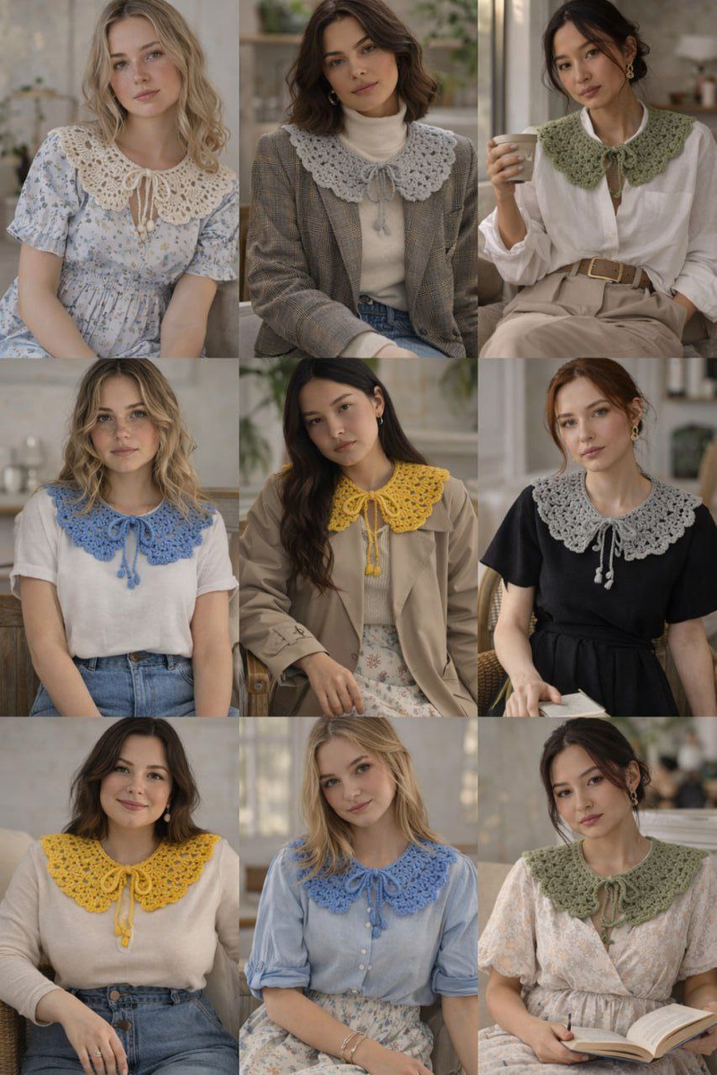 платью» На самом деле всё наоборот! Съёмный воротник сегодня универсальный способ менять образ за секунду🙌 С платьем он создаёт романтичный акцент, с рубашкой делает образ аккуратным и стильным, а с базовой футболкой или джемпером превращает повседневный комплект в продуманный и интересный. Посмотрите на фото: одни и те же формы, но каждый раз воротник работает по-новому. А тому же съёмный воротник экономит место в гардеробе, позволяет экспериментировать с образами и быстро освежает привычные вещи без покупки новых... Напоминаю, что 11 и 12 марта действует скидkа 50%. Попробуйте связать сами и откройте новые возможности для своего гардероба. ❗️Стouмость уже снижена на сайте https://baklago.ru В прошлом году связали очень много воротничков😍 Завтра покажу их вам!) А пока можно посмотреть тут, тут и тут