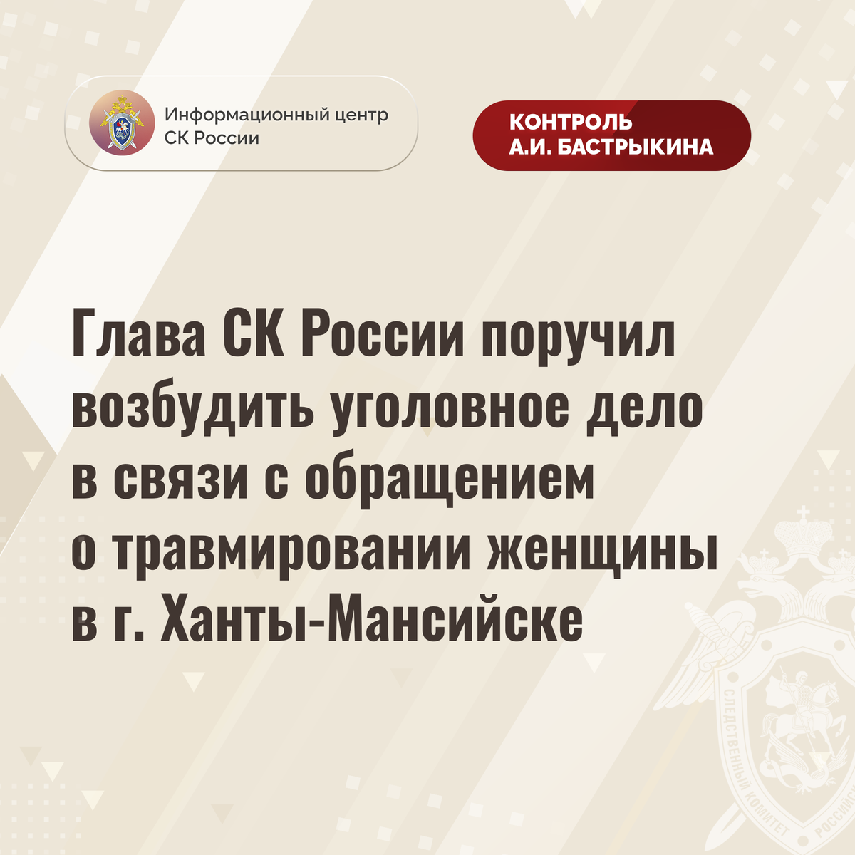 Глава СК России поручил возбудить уголовное дело в связи с обращением о травмировании женщины в г. Ханты-Мансийске