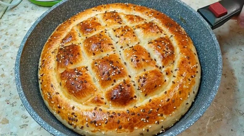 Привет! Сегодня я расскажу, как пеку дома простой и очень вкусный хлеб. Обычно я придаю ему форму турецкой лепешки — так и готовить удобно, и выглядит красиво. Для начала собираю продукты. Мне понадобятся: 200 миллилитров молока, столько же теплой воды, примерно 600 граммов муки, столовая ложка сахара, чайная ложка соли и чайная ложка дрожжей. Еще добавлю три столовые ложки растительного масла, а для верха возьму один желток и немного кунжута. Начинаю с теста. В глубокую миску наливаю молоко и теплую воду — жидкость должна быть приятно теплой, градусов около сорока. Туда же отправляю дрожжи, сахар, соль, масло. Постепенно подсыпаю муку и начинаю замес. Тесто должно получиться мягким, эластичным, приятным на ощупь. Мука у всех разная, поэтому стараюсь не высыпать всю сразу, а добавлять постепенно, чтобы вовремя остановиться. Готовое тесто оставляю прямо в миске, накрываю крышкой и убираю в теплое место на час — пусть подходит. Через час тесто заметно вырастает, становится пышным. Я его