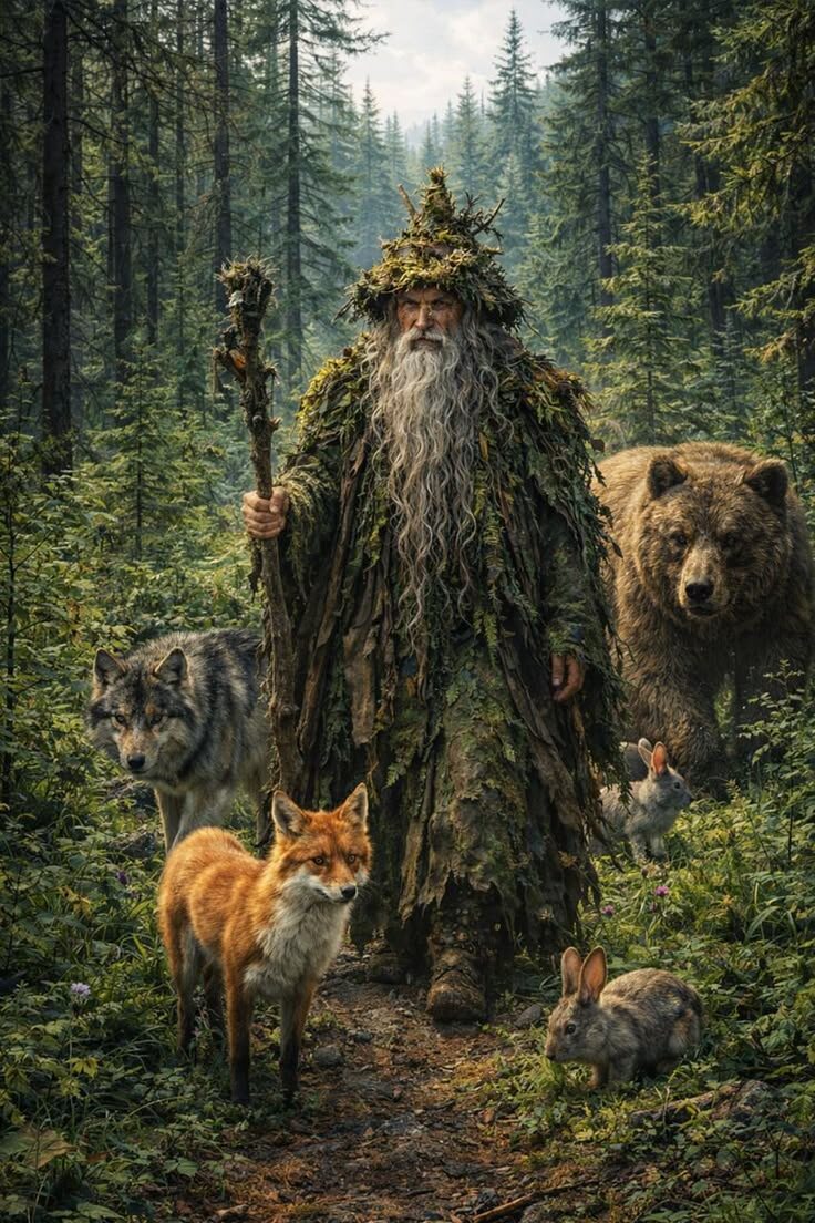 В самой чаще леса, где даже GPS теряет ориентацию, а компас начинает врать, жил Леший. Обычный такой Леший — с бородой из мха, глазами цвета болотной ряски и шапкой из старого птичьего гнезда на макушке. 🍂