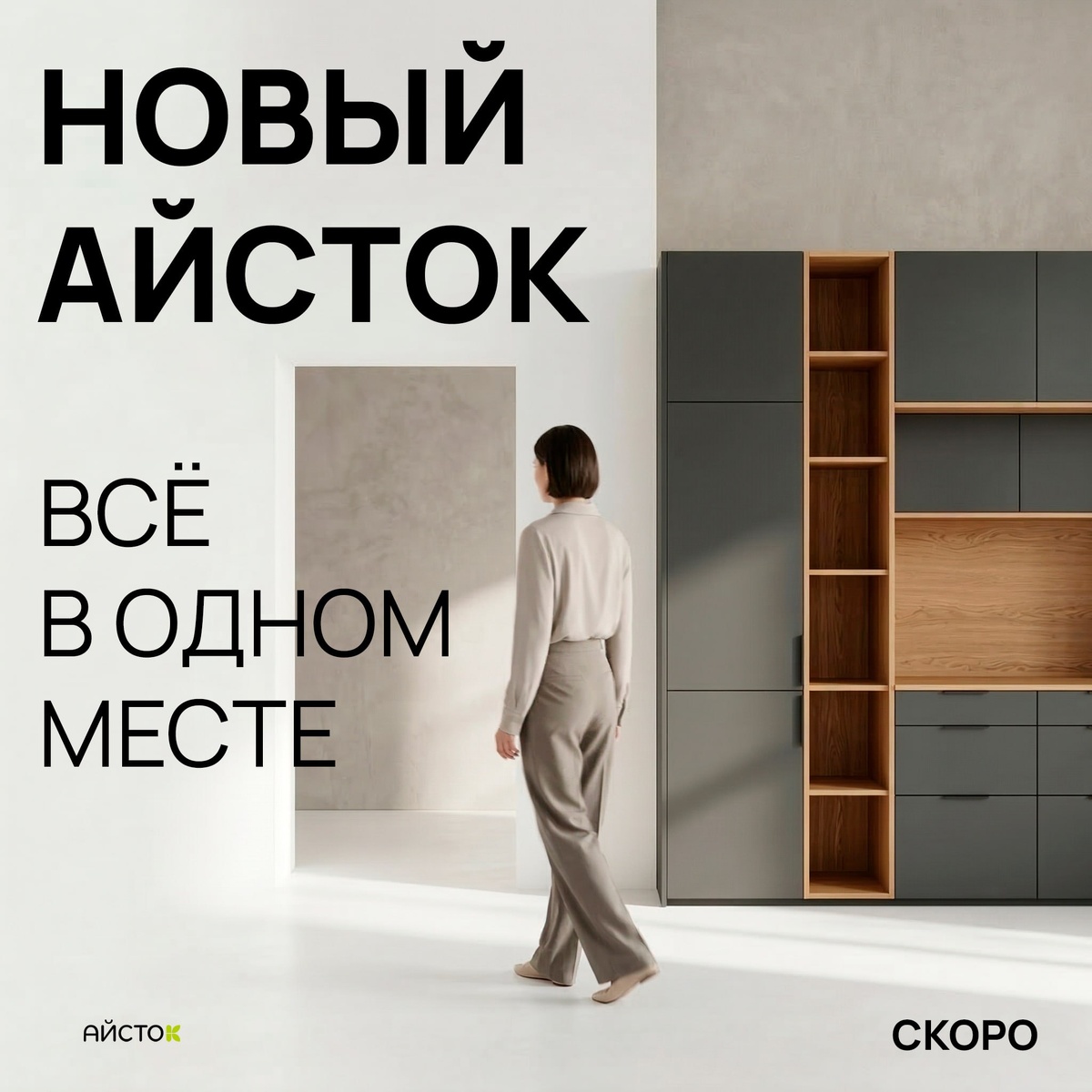Чтобы сделать выбор мебели проще. Вдохновение. Материалы. Визуализация. AI-подбор. Социальная сеть. Личный консультант 24/7. Быстрое и бережливое производство. Заказ. Теперь всё это — в одном месте. Скоро покажем, как это работает.