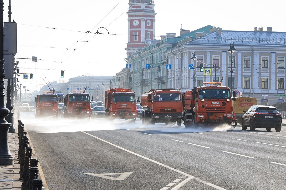 Вчера колонна из пяти Камазов с бочками очистила всё дорожное полотно от площади Восстания до Дворцовой и обратно.