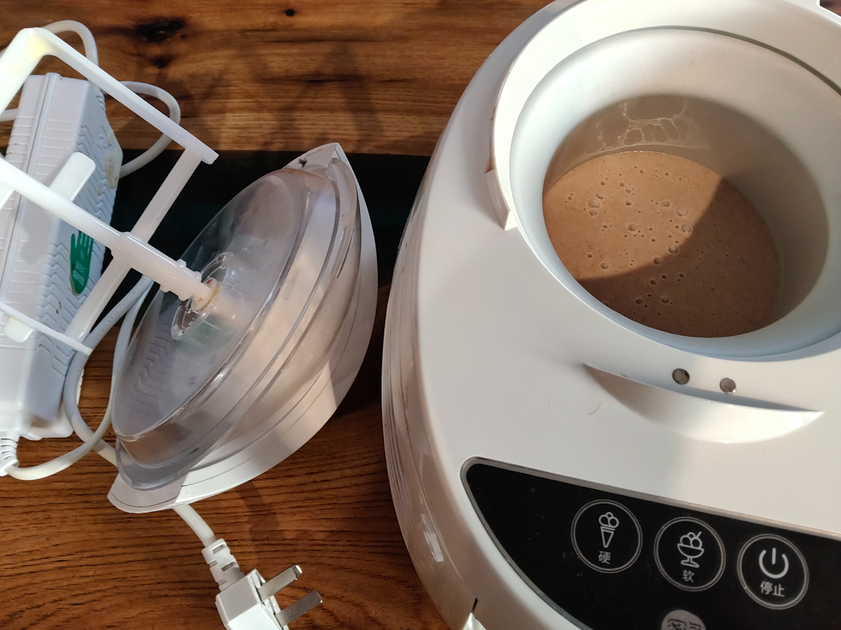 - Подготовка мороженицы. За 12–24 часа до приготовления уберите чашу мороженицы в морозилку. Она должна быть полностью заморожена (потрясите — не должно быть бульканья жидкости внутри стенок).