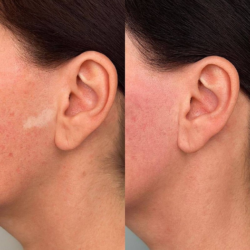 рубец часто остаётся: ⏺ белый ⏺ розовый ⏺ зеленоватый ⏺ отличается от кожи Потому что процедуры могут: ✔ сгладить поверхность ✔ уменьшить плотность ✔ улучшить текстуру Но вернуть цвет кожи – это совсем другая задача. И вот здесь начинается уже другая работа. Камуфляж рубца – это не про лечение. Это про эстетику. Это техника, где пигмент подбирается так, чтобы визуально слиться с оттенком кожи и сделать рубец менее заметным. Сегодня это востребованная процедура, особенно после операций и травм.