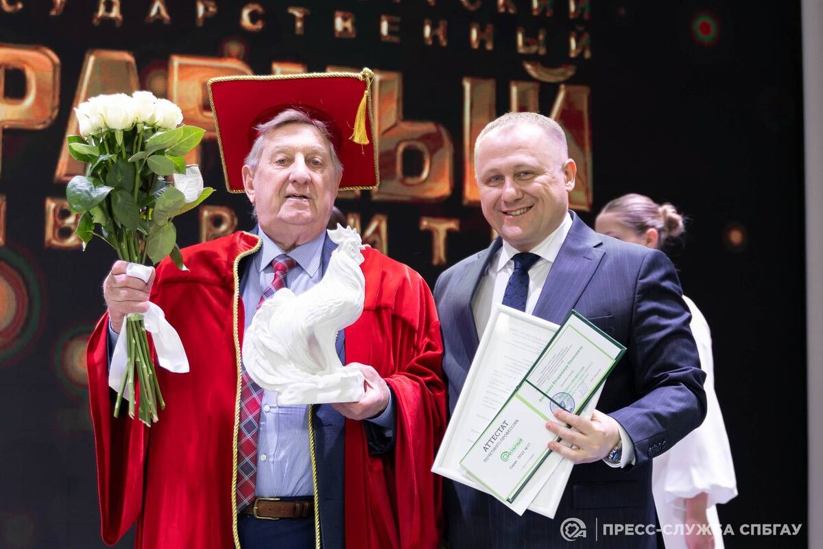 🌾 Выдающийся ученый Владимир Фисинин посетил наш университет. В рамках программы он ознакомился с инновационной базой Института животноводства и аквакультуры, уделив особое внимание опытам кафедры птицеводства. Центральным событием визита стала открытая лекция о реалиях и будущем российского птицеводства. В завершение встречи состоялась торжественная церемония: за выдающиеся научные достижения Владимир Иванович Фисинин был удостоен звания «Почетный профессор СПбГАУ». Подробнее читайте в МАХ.