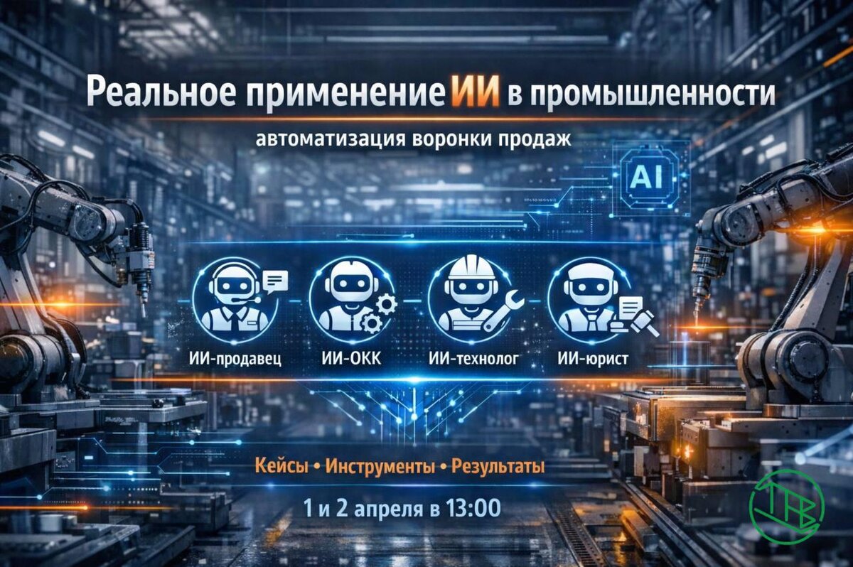 )... переживаю трындец, никогда не проводил такого рода вещи. Вебинар для промышленников, будем рассказывать о том как ИИ использовать в производстве и не только. Даже создали отдельный канал для промышленности "Завод будущего" Поддержите, если есть знакомые производственники поделитесь с ними, будет полезно.