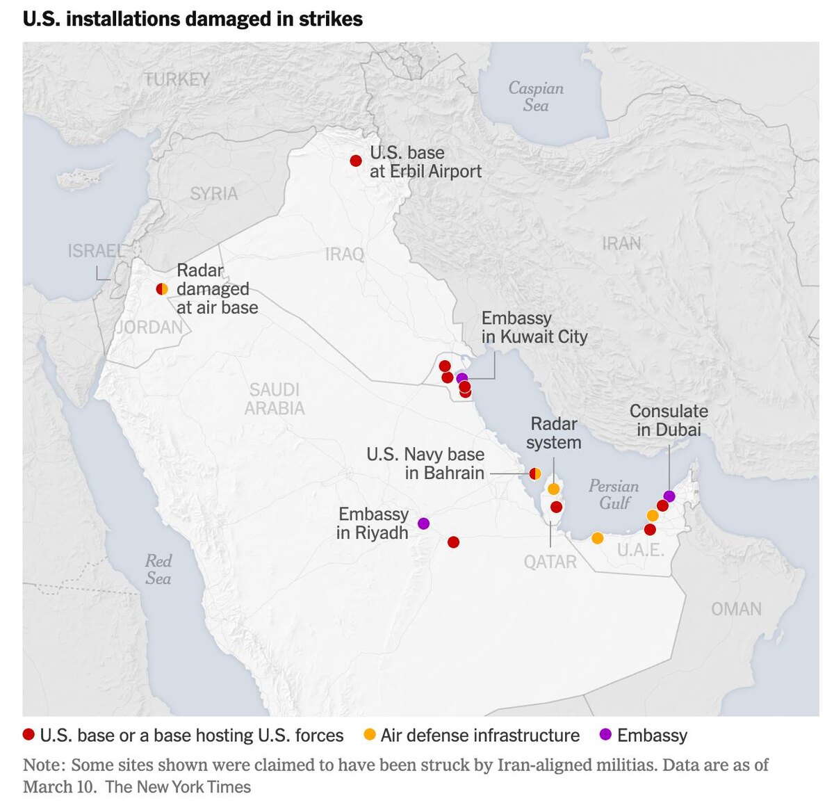«Минимум 17 американских объектов на Ближнем Востоке были поражены в ходе войны с Ираном», — The New York Times