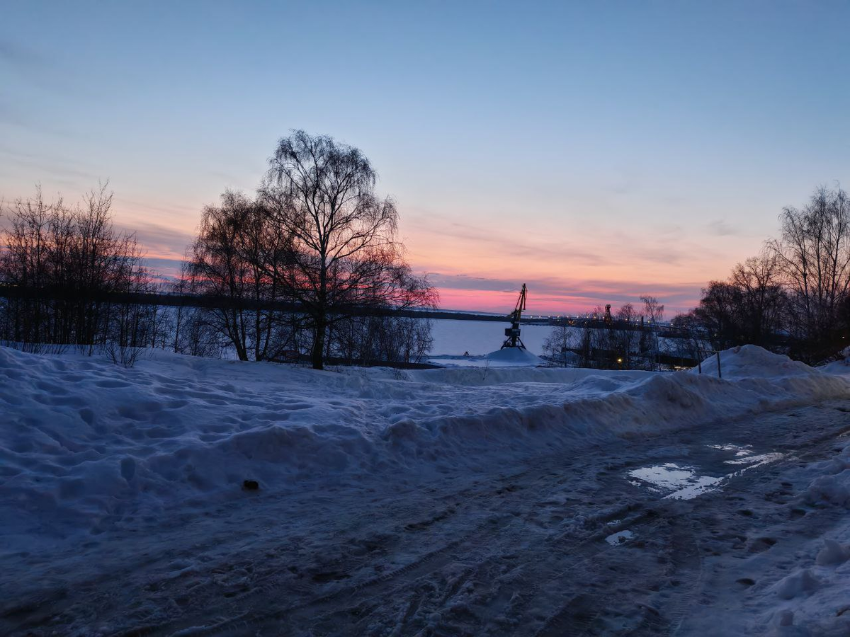 Здравствуйте, дорогие мои друзья! Уезжали мы утром зимой, домой вернулась уже весной. Хотя и зима не сильно суровая была, около -2°, зато днём на солнышке термометр в машине показал аж +13°, чуть в тени было +8°. Как-то прямо резко потеплело, тут же около школы образовалась огромная лужа, сугробы сильно осели везде, дороги сырые. Понятно, что это потепление, пришёл антициклон, будут ещё и морозы, и снег может выпасть. Ездила вечером к своим девчонкам, у них прямо красота около дома. Вид на средний бьеф. И лужи уже появились. За кустами видно огни спортивной площадки. Не пошла смотреть, почищено там или нет, но детские голоса с той стороны было слышно. И в классе стало тепло, моим девятиклассникам стало даже жарко, они открыли одно окно. Пришёл следующий девятый класс и закрыл окно, им стало холодно. В школе проходила диспансеризация, мои тоже попали на это мероприятие. Собирала согласия на диспансеризацию, в итоге 1 помял бумажку и просил новую, 1 красотка просто потеряла, а у двои