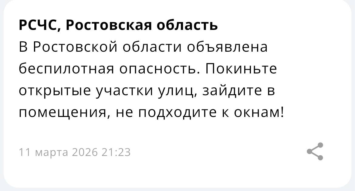 ‼️ В Ростовской области объявлена беспилотная опасность.