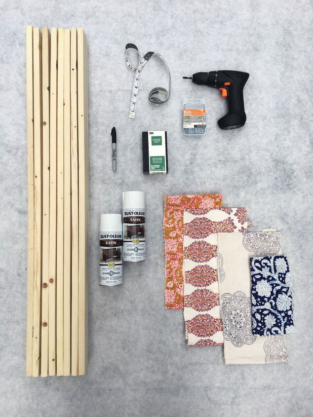 Хотите разделить комнату на зоны? Или просто оживить скучную стену? Создайте вот такую перегородку из ткани, которая добавит интерьеру лёгкости и стиля «Free People». Принцип один и тот же, но вы можете использовать разные ткани и материалы, чтобы подогнать дизайн под свой интерьер. Материалы: Шаг 1: Покупая доски в строительном магазине, попросите сразу нарезать их нужной длины. Я делала небольшую перегородку, поэтому попросила нарезать доски по 96 см. Так из каждой доски получилось по 2 куска, всего 8 деталей, и остались обрезки для будущих проектов! Свежие срезы нужно обработать наждачкой, чтобы убрать шероховатости. Шаг 2: Покрасьте доски из баллончика и дайте высохнуть. Шаг 3: Возьмите 2 доски и рулетку. Наметьте крестики по центру доски примерно через каждые 5 см. Просверлите отверстия в каждой отметке. Отложите эти две доски в сторону. Шаг 4: Возьмите 3 оставшиеся доски. Положите одну на пол горизонтально. Прикрутите к ней по бокам еще две доски так, чтобы получилась П-образная