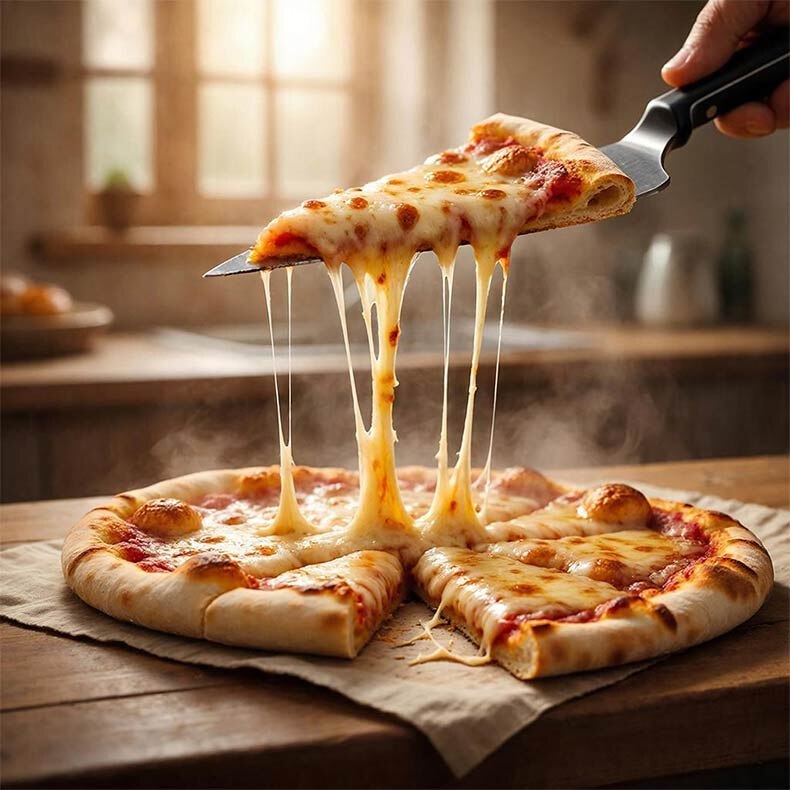 Техника. Выкладываем пиццу на сухую раскаленную сковороду, убавляем огонь до среднего и накрываем крышкой. Крышка создает пар, который плавит сыр сверху, пока низ жарится. 5-7 минут — и вы счастливы.