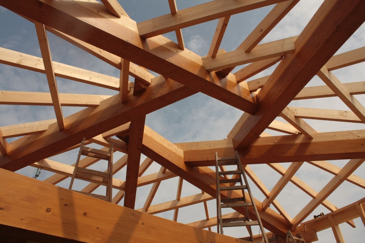 ✔ Выразительность. Открытая структура балок создает особую атмосферу в доме, бане или беседке. Это не просто крыша, а архитектурный акцент, задающий настроение всему помещению.