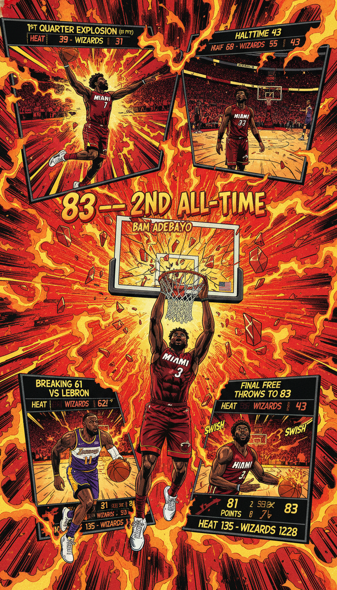 А тут вдруг центровой Хит набрал 31 очко за четверть, отдых в начале второй оказался не способен остудить его "горячую руку" и к большому перерыву на счету Адебайо было уже 43 очка.