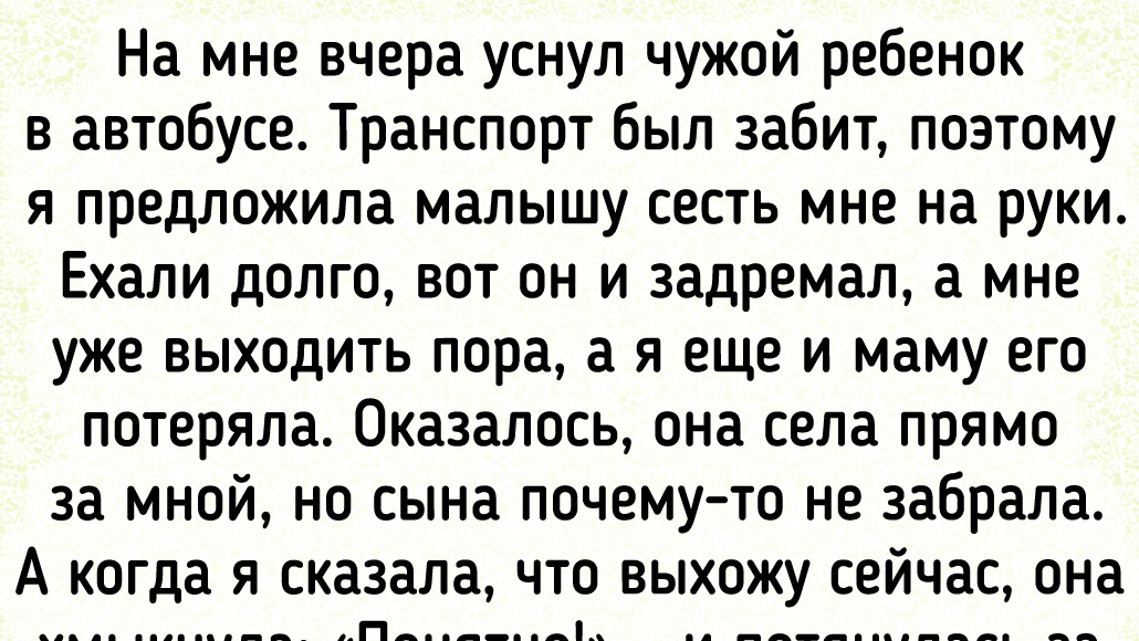 Бывает, просто едешь в маршрутке, обедаешь в ресторане или выбираешься на улицу прогуляться. Ничего не предвещает беды, но тут происходит ситуация, которая полностью сбивает с толку, смешит или, наоборот, печалит. Вот и герои нашей подборки просто выбрались в людное место, а вернулись оттуда с историями. Сегодня упала в обморок прямо на пляже. Купила газировку, стою, открываю. Вдруг неожиданно закружилась голова, и я свалилась прямо у ног какого-то парня. Очнулась, вижу, стоит он, льет на меня морскую воду из ведерка и говорит: — Девушка, вы бы меня попросили, я бы вам помог открыть. Что же сразу в обморок падать? — и улыбается. © Saban / Pikabu Из будней работы в аэропорту. Прилетел самолет с одним пассажиром. Встречали его со службой безопасности. Оказался представителем одной крупной компании. На выходе из самолета начал кричать: «Ура, я дома!» Пихал бортпроводникам деньги. А те не растерялись, нагребали. Только я отнекивалась и отказывалась. В итоге одну бумажку в кармане заметила
