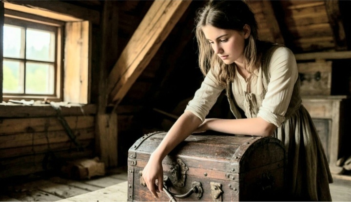 Поднявшись на чердак, Лиза огляделась. Пыль толстым слоем покрывала старые коробки, мебель, чемоданы. В углу стоял старый сундук, обитый потемневшим железом. Она помнила его с детства — бабушка запрещала его трогать.