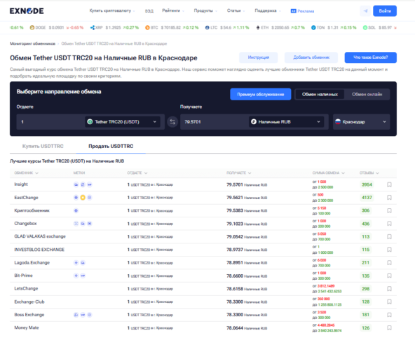 Использование мониторинговой платформы Exnode помогает заранее оценить надежность сервиса, сравнить рейтинг обменников, изучить отзывы и выбрать обменники крипты в Краснодаре, которые подходят как для новичков, так и для опытных инвесторов.