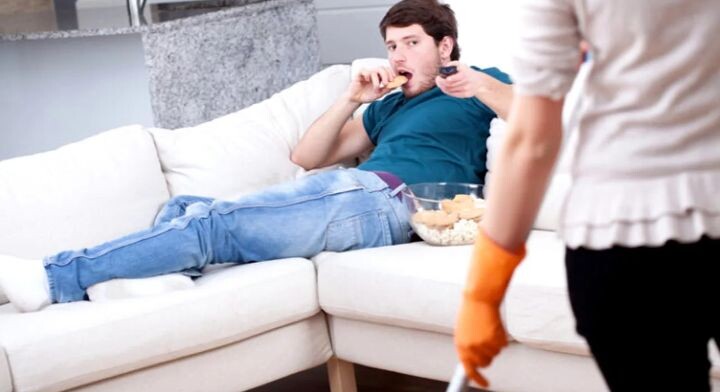 Вот он получил всё, что хотел: секс (разнообразный), готовку, уборку, стирку и эмоции, а в ответ мы получаем "диванную болезнь" партнёра, отсутствие предложений о свиданиях, нежелание брать на себя ответственность и даже выбор ужина.