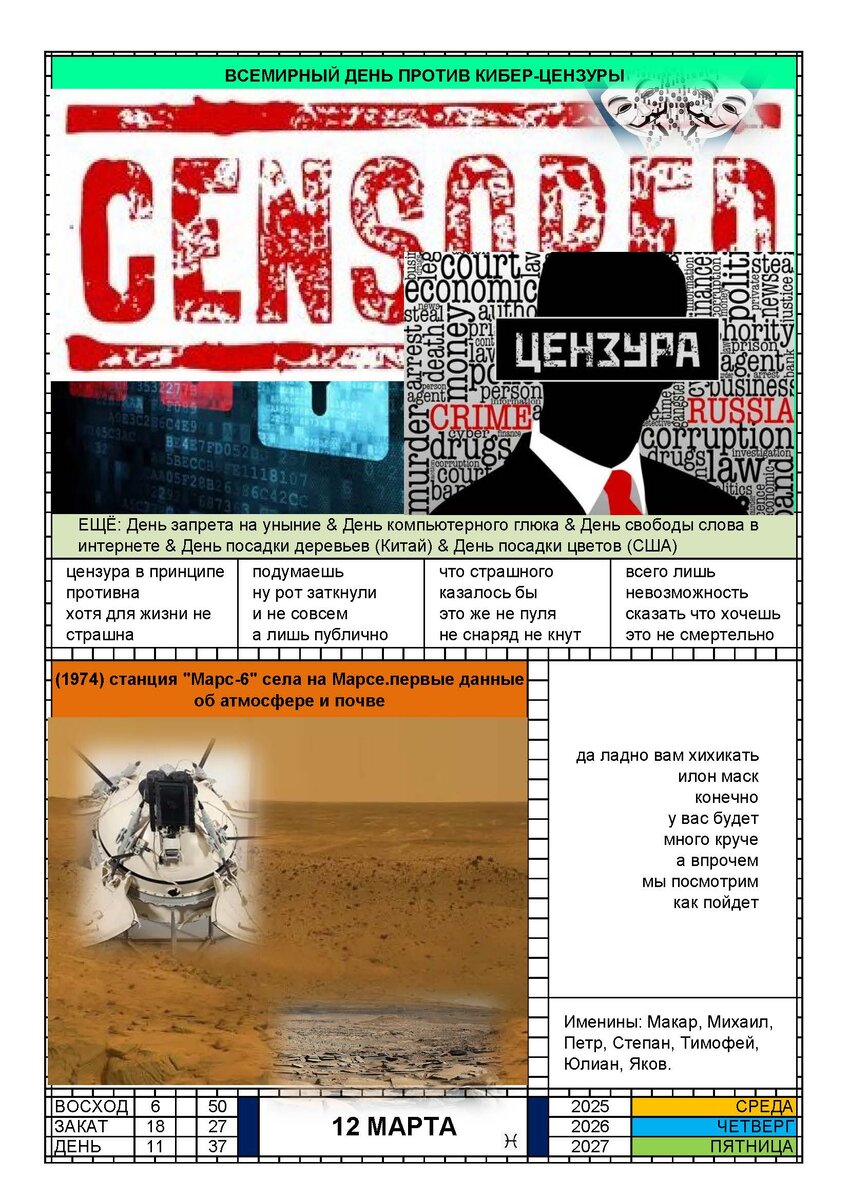 КАЛЕНДАРЬ 12 МАРТА