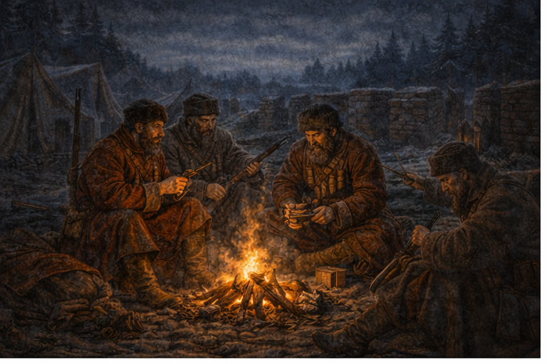 Военные лагеря XVII века выглядели совсем иначе, чем современные армии. Не было электрического освещения, радиосвязи или постоянной охраны с техникой. Ночью лагерь погружался в полумрак, освещённый только редкими кострами и факелами. Большинство солдат пытались отдохнуть после тяжёлого дня. Но даже ночью лагерь никогда не становился полностью спокойным. Потому что война могла напомнить о себе в любой момент. Когда наступал вечер, солдаты начинали готовиться к ночи. Они: Иногда рядом с огнём можно было услышать тихие разговоры. Люди обсуждали прошедший день, дорогу, слухи о противнике. Такие разговоры помогали снять напряжение. После полуночи лагерь постепенно затихал. Большинство солдат засыпало прямо возле костров или в палатках. Но охрана продолжала службу. Часовые обходили укрепления и наблюдали за дорогами, ведущими к лагерю. В темноте каждый звук мог показаться подозрительным. Иногда это был ветер. Иногда — шаги животных. Но часовой обязан был быть готовым к любой неожиданности.