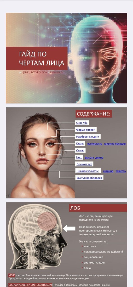 Собрали разбор 12 черт лица на 56 страниц.