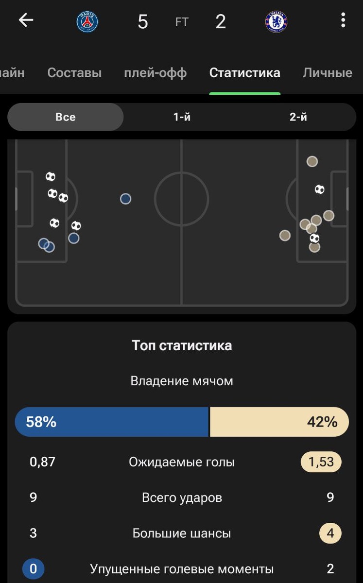 ? 0.87 — 1.53 Худший игрок матча — Йоргенсен. Худший тренер матча — кто поставил Йоргенсена в состав. Столько даже с худшим Санчесом «Челси» бы не пропустил. «ПСЖ» можно проходить, абсолютно понятный соперник. Но. Но. Но. Добрых снов. @lookatfacts
