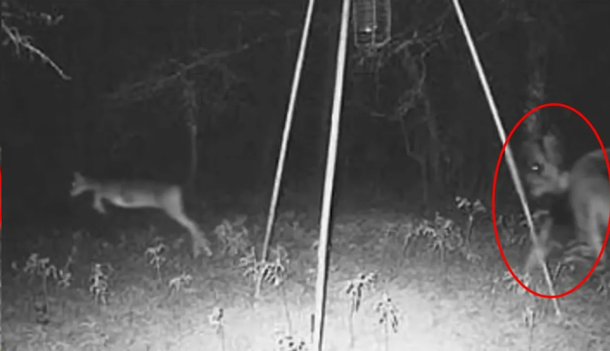 На записи видно, как поздним вечером из леса выходит фигура. Сначала кажется, что это медведь, вставший на задние лапы — характерная походка, мощные плечи. Но через пару секунд становится понятно: медведи так не ходят. Слишком прямо. Слишком... по-человечески.