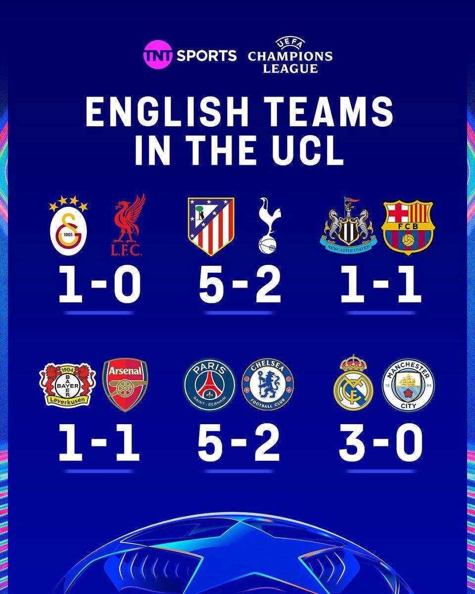 Английские клубы в 1/8 финала Лиги Чемпионов: 4 поражения, 2 ничьи 🏆