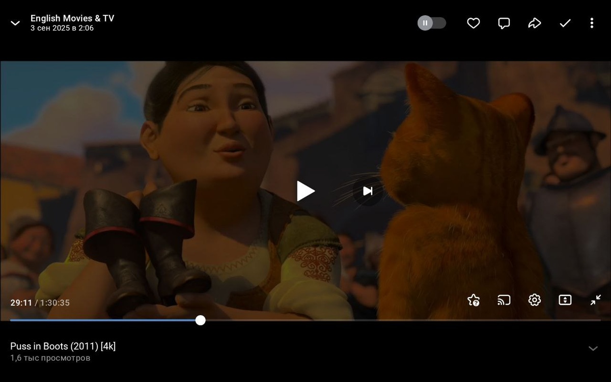 ". Мне кажется, я его уже видел. Причём, так же на английском. Или кусками. Или у меня провалы в памяти) Но как итог, я и тут умудрился разрыдаться) Хотя и в этот раз даже смотрел на английском, который плоховато понимаю. Для интереса, даже отметил моменты где заплакал. На удивление их оказалось целых три: 1) Когда ему "мама" (женщина что его растила) подарила сапоги. 2) Когда он поцарапал лицо стражнику. В ночь, когда Яйцо обманом его втянул в ограбление банка. Там ещё стражник сказал типа: "Ты пообещал делать добро..." или вроде того. 3) И когда в конце он приходит снова к маме и она ему говорит что он заработал/заслужил эти свои сапоги.