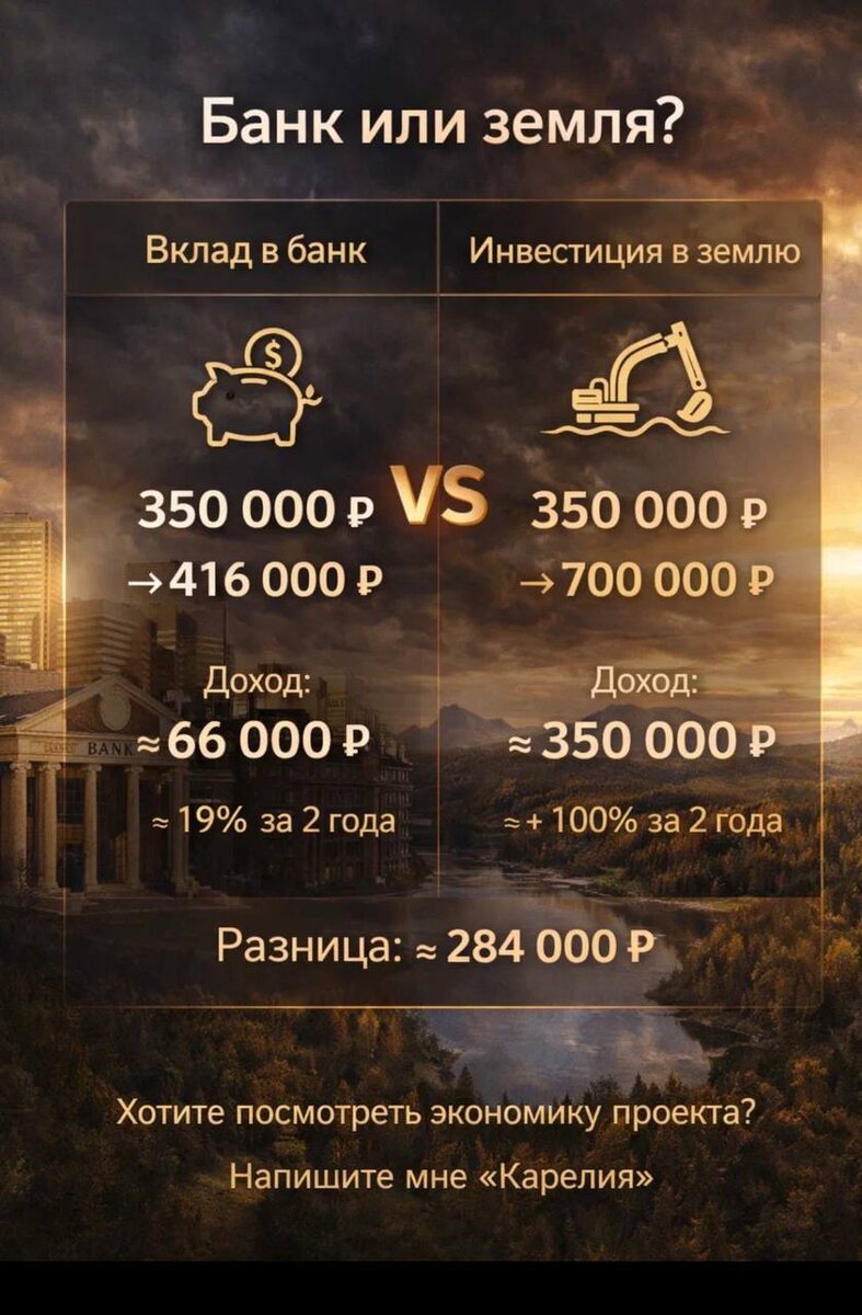 %. Это произошло впервые почти за два года. Банки начинают постепенно снижать доходность по депозитам, даже до того как ЦБ сделает следующие шаги по ключевой ставке. Что это означает? Во-первых, эпоха сверхдоходных вкладов заканчивается. В 2024–начале 2025 депозиты давали исторически высокую доходность, но этот период не бесконечен. Во-вторых, деньги постепенно начнут искать альтернативы. Часть капитала может перетекать в недвижимость и другие инструменты с более высокой доходностью. 😁В пятницу в 11:00 МСК состоится встреча с девелопером проекта для тех, кто оставил заявку в листе ожидания. На встрече подробно разберём локацию, документы и план развития. Напомню, что участки можно зафиксировать по инвестиционной цене — 350 тыс., при том что в этой же локации минимальная рыночная цена уже начинается от 600 тыс. Сейчас в листе ожидания осталось всего 7 мест из 37.. Если хотите попасть в список — можно оставить заявку здесь. 😁Такие цены на землю обычно бывают только на этапе фо