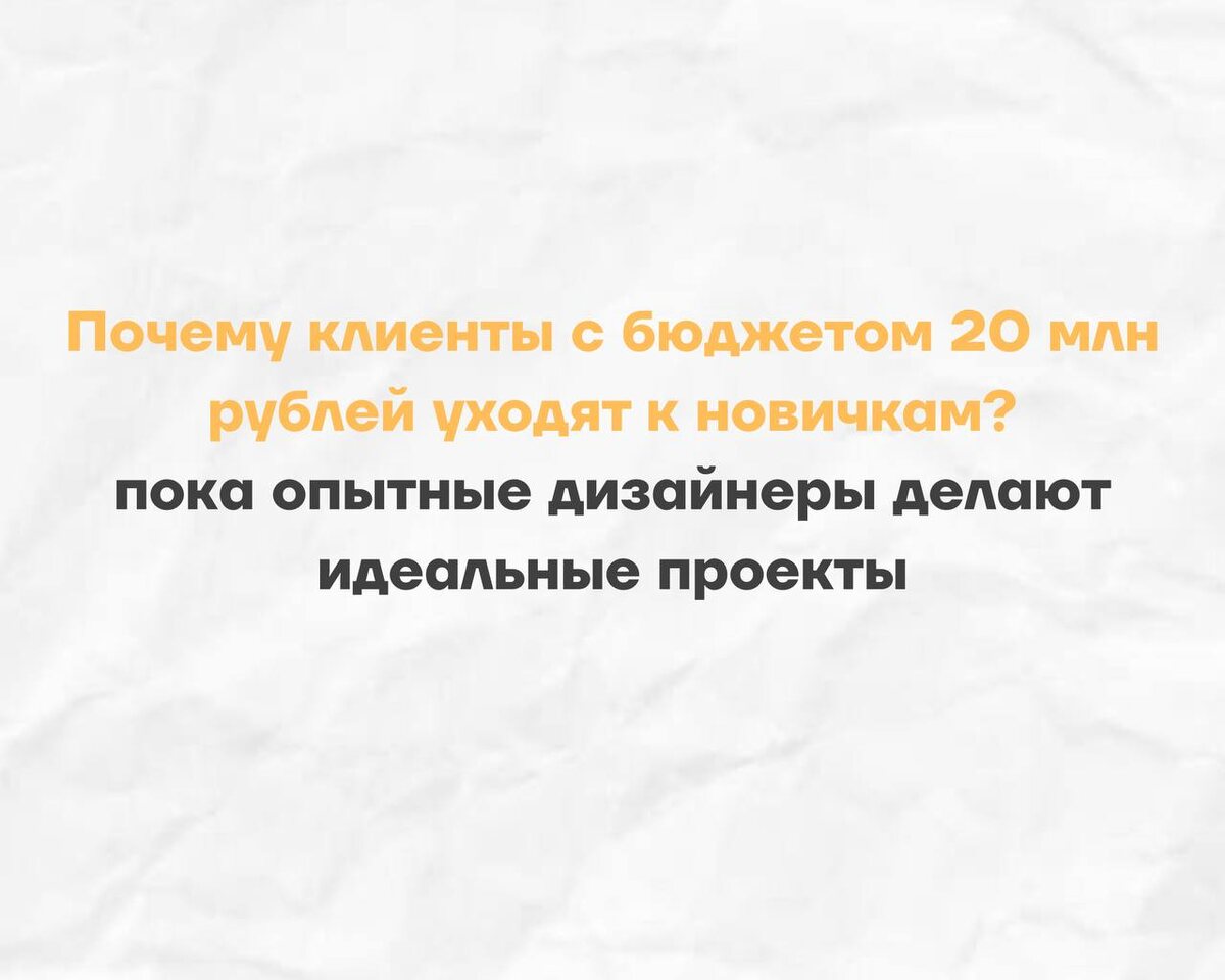 Почему клиенты с бюджетом от 20 млн рублей уходят к новичкам, пока опытные дизайнеры делают идеальные проекты