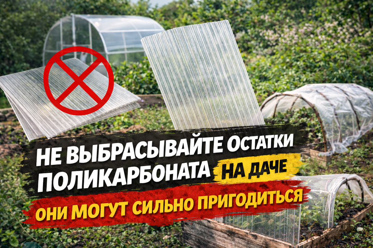И многие в итоге просто выбрасывают их. Но на даче это очень полезный материал, который не боится влаги, солнца и холода. Из обрезков поликарбоната можно сделать много практичных вещей для участка. Весной поликарбонат отлично подходит для небольших укрытий. Что делают: Получается простое укрытие, которое защищает растения от: Такие мини-парники часто используют для: Очень удобное решение. Если сделать на грядке деревянный короб, сверху можно положить лист поликарбоната. Получается небольшая теплица. Земля быстрее прогревается, и растения начинают расти раньше. Поликарбонат отлично подходит для крыши небольшой дровницы. Что делают: Он пропускает свет, но защищает дрова от дождя и снега. Иногда растения страдают от холодного ветра. Куски поликарбоната можно поставить по краям грядки как ветрозащитные экраны. Это особенно помогает: Ещё одно полезное применение. Пол