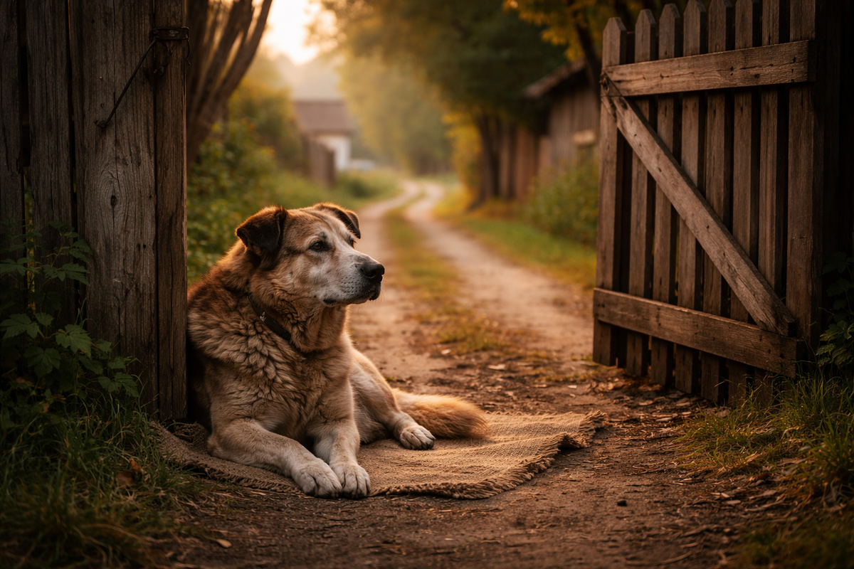 Привычка ждать ведь не умирает вместе с собакой. Она остаётся в доме. В скрипе калитки. В лишней миске под навесом. В руке, которая машинально несёт корочку хлеба не туда. В человеке, который выходит утром во двор и всё равно смотрит налево — туда, где раньше лежал его молчаливый свидетель, охранник, сосед по старости.