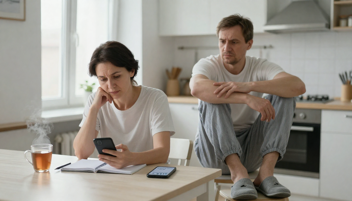 Утром Тамара ушла на работу, не завтракая. Леонид сидел на кухне с кружкой чая, который успел остыть. На нём были те самые тапочки: серые, стоптанные, с дырой на правом большом пальце. Он носил их третий год. Тамара дважды предлагала купить новые. Он отвечал: «Да нормально, ещё походят». И она не настаивала.