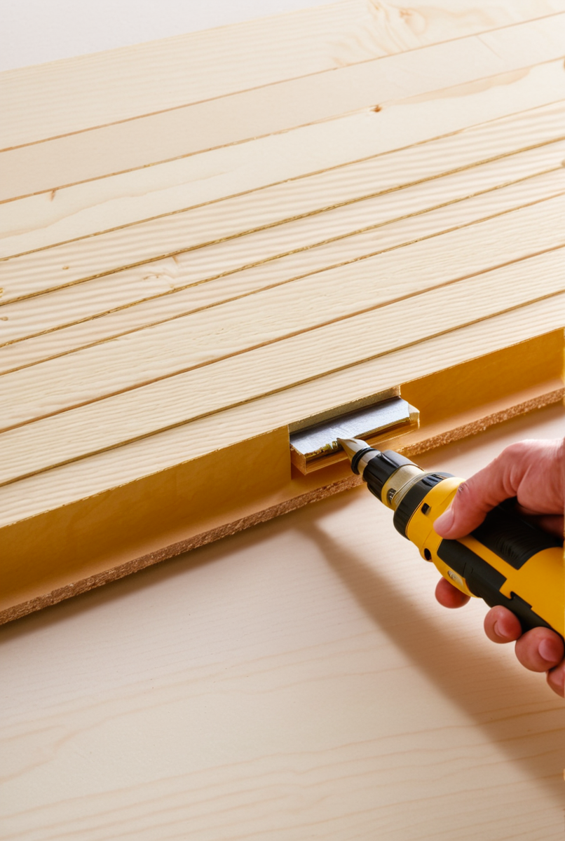 - Первая панель надежно фиксируется на саморезы со стороны паза.