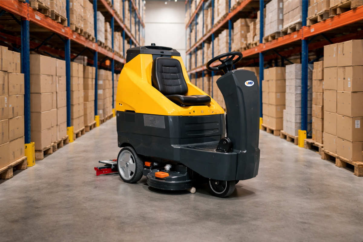 · Для крупного логистического центра (от 15 000 м²) нужен райдер VMD F130 BT80 машина с шириной уборки 800 мм и большими баками на 130/140 литров. Высокая производительность быстро окупается за счет экономии рабочего времени. За смену машина способна убирать до 22 000 м².