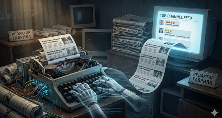Когда-то мы верили, что нейросети станут цифровыми ассистентами, помогающими человечеству создавать шедевры, но реальность оказалась куда прозаичнее. Сегодняшний интернет, и в частности крупные платформы вроде Дзена, превращается в бесконечный конвейер «быстрого контента», где качество принесено в жертву охватам. Вот периодически просматриваю топ-каналы, пытаюсь анализировать причины их популярности, и начинают шевелиться волосы на голове. Короткий, сухой абзац текста, рожденный в недрах алгоритма, и случайная картинка со стока становятся идеальной наживкой. Технически это выглядит как совершенный механизм. Скрипты парсят заголовки, API генерирует тексты, а боты-постеры выстреливают ими в ленту с пулеметной скоростью. Но самое печальное здесь не автоматизация, а то, как изменился сам потребитель. Текст перестал быть источником знаний, он превратился в простую кнопку активации эмоций. Современному читателю зачастую достаточно короткого импульса, чтобы мгновенно пролистать страницу вниз,