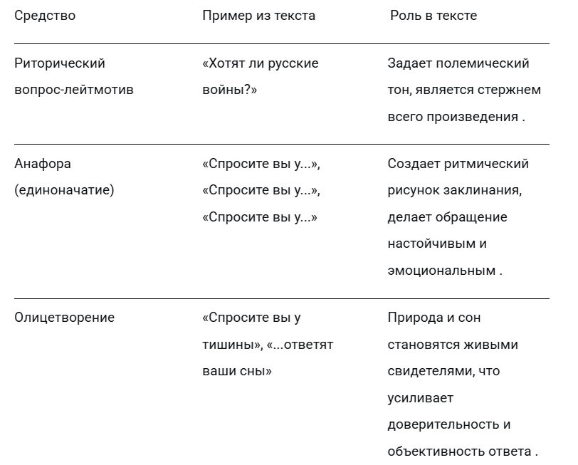 Евгений Евтушенко написал стихотворение «Хотят ли русские войны?» в 1961 году. Это был период обострения холодной войны, когда мир реально стоял на грани ядерного конфликта. Во время зарубежных поездок поэт столкнулся с тем, что русских за границей часто воспринимают как агрессоров . В ответ на этот стереотип и родилось произведение, задуманное как песня (музыку написал Эдуард Колмановский) и посвященное певцу Марку Бернесу . Интересно, что из-за отсутствия откровенной воинственности стихи сначала не одобрялись советскими чиновниками, но позже стали известны во всем мире . Ниже представлен подробный анализ стихотворения. Стихотворение стало одним из самых сильных антивоенных символов не только в советской, но и в мировой культуре. Его перевели на многие языки, оно звучало на конгрессах в защиту мира . «Хотят ли русские войны?» переросло рамки поэзии и превратилось в риторический вопрос, ответ на который известен каждому, кто помнит уроки истории. Это гимн памяти павшим и напоминани