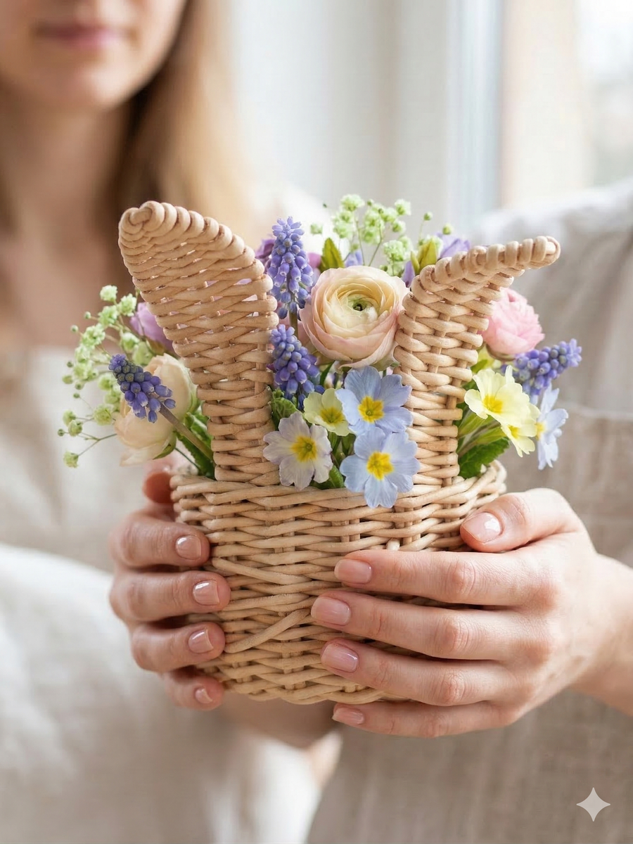 Мы в «Генераторе уюта» долго думали, как материализовать хорошее настроение, и поняли: обычные круглые корзины — это, конечно, практично, но немного скучно. Поэтому мы взяли и… приделали корзинке уши! Встречайте нашу главную весеннюю новинку — Ушастую корзинку. Изначально мы задумывали ее как идеальную альтернативу скучным подарочным пакетам (которые, давайте честно, живут ровно до момента распаковки).