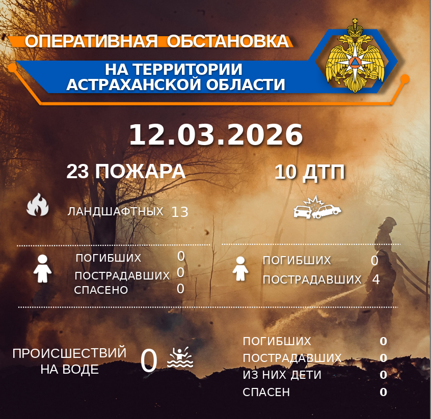 Оперативная обстановка на территории Астраханской области по состоянию на 00:00 12.03.2026