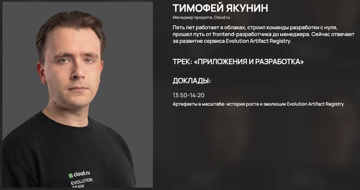 ️⃣ Расскажу про процессы связанные с хранением артефактов, там много чем можно поделиться) 🪑 Сейчас без артефактов никуда. Чтобы сделать микро приложение на python, нужно скачать десяток либ, а если вы его хотите маломальски верно задеплоить, вас ждут - сборка и скачивание образов, уязвимости в базовом образе, рост мусора в хранилище (который будет жрать деньги) и много чего ещё.😐 В общем поговорить есть о чем. Буду рад увидеться 😊 https://cloud.ru/gocloud
