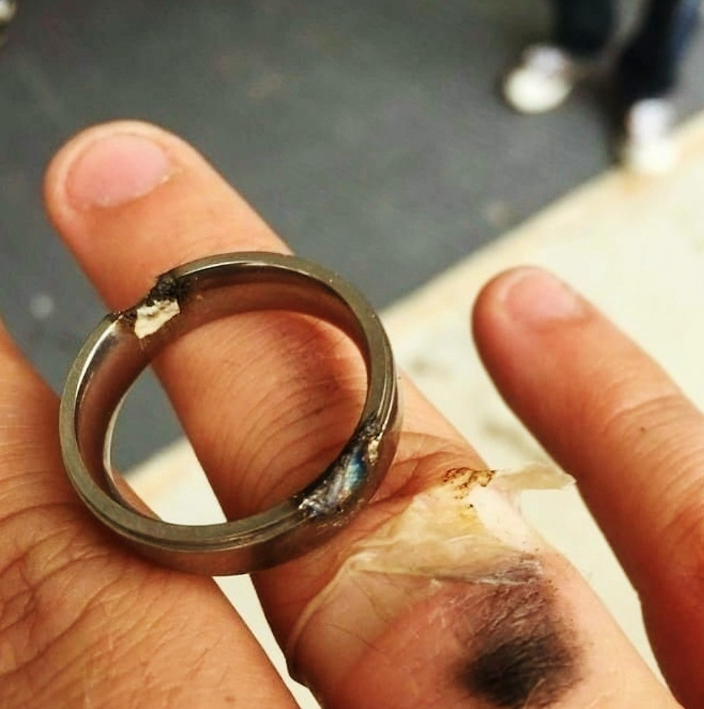На форумах про это так пишут: «Кольцо на пальце сварщика — это как граната с выдернутой чекой. Вроде и красиво, но бахнуть может в любой момент».