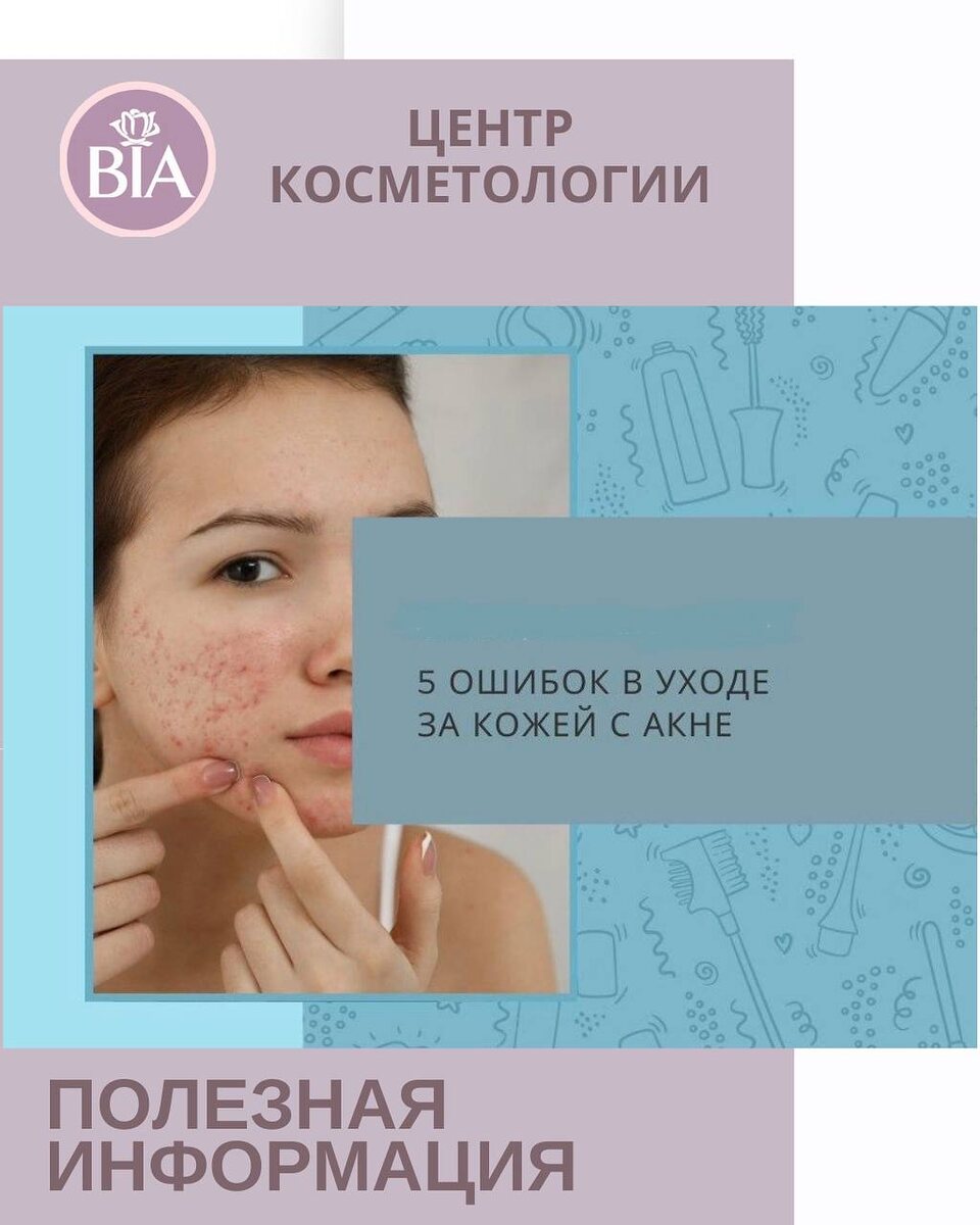 🔷 Пересушивание кожи Агрессивные очищающие средства, частые пилинги и спиртосодержащие лосьоны нарушают защитный барьер. В ответ кожа начинает вырабатывать больше себума, воспаления становятся устойчивыми, а восстановление замедляется. 🔷 Одновременное использование множества активов Кислоты, ретиноиды, бензоил пероксид и антисептики, применяемые без структуры, повышают риск раздражения. Воспалённая кожа реагирует покраснением, шелушением и усилением чувствительности. 🔷 Игнорирование увлажнения Существует ошибочное мнение, что при высыпаниях крем не нужен. На самом деле недостаток влаги усиливает нарушение барьерной функции и снижает переносимость лечебных средств. Лёгкое, некомедогенное увлажнение является частью базового ухода при акне. 🔷 Частое прикосновение к лицу и механическое воздействие Попытки выдавливать элементы, активное трение полотенцем или скрабирование способствуют микротравмам кожи и распространению воспаления. Это повышает риск поствоспалительных пятен и замедля