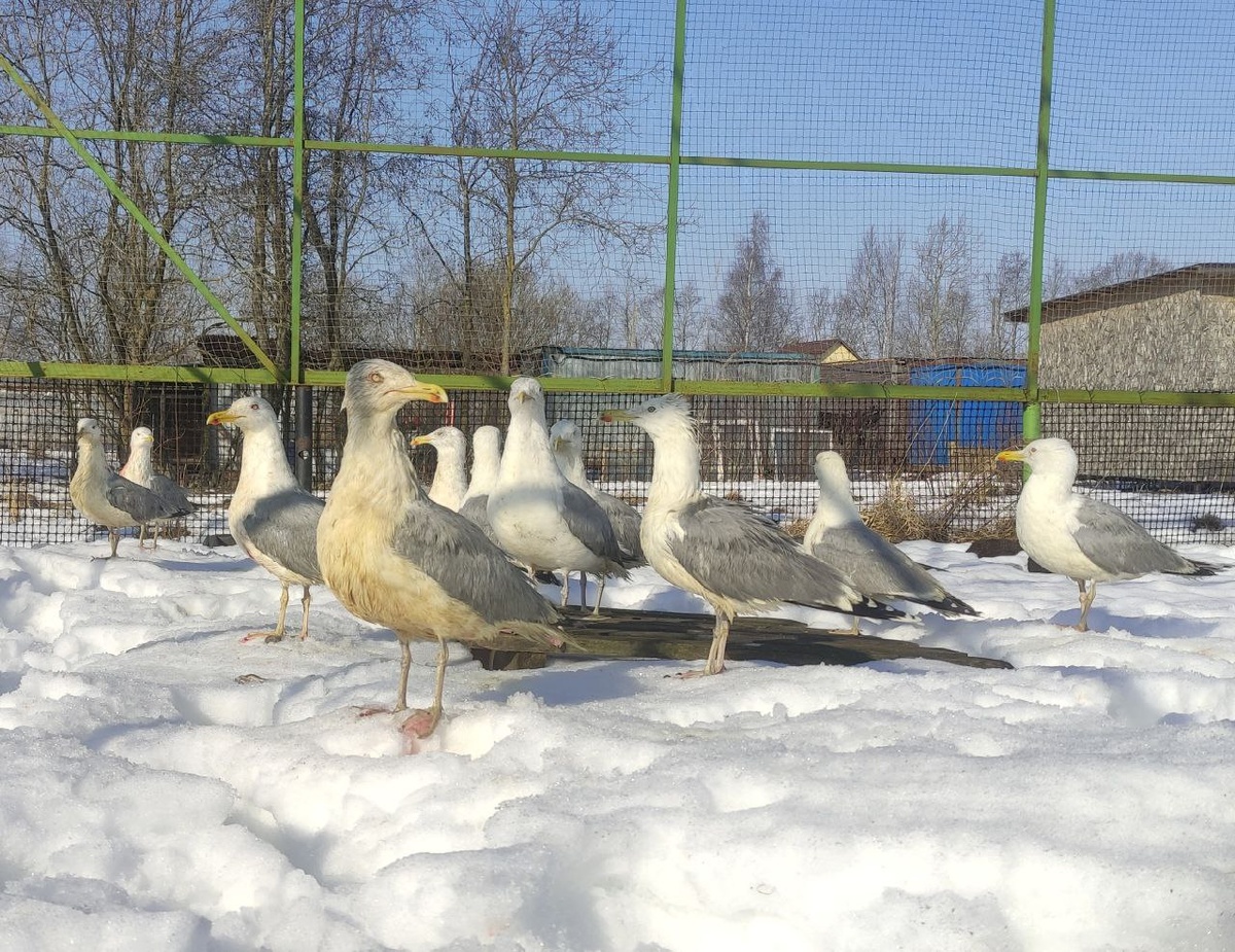 Первая партия чаек в этом году переехала в уличный вольер для разлета перед выпуском