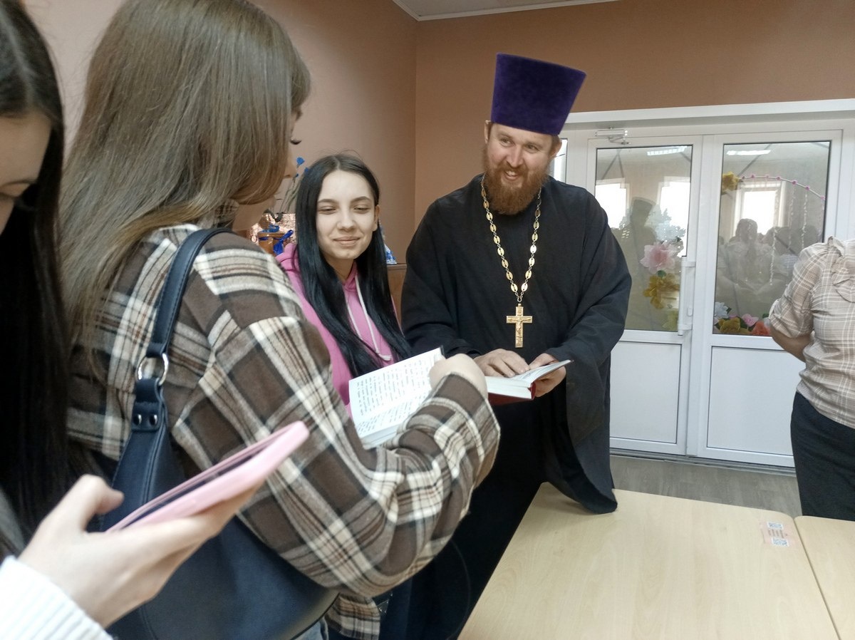 В гости к ребятам пришел настоятель храма преподобного Сергия Радонежского храма иерей Сергий Чукович. Поводом для встречи стал День православной книги — праздник, призванный напомнить о глубине и мудрости духовной литературы. Отец Сергий не просто прочел лекцию, а постарался вовлечь молодых людей в диалог о вечном: о добре и зле, о поиске своего пути и о том, где современному человеку искать нравственные ориентиры. Священник подчеркнул, что православная книга — это не только священные тексты, но и кладезь житейской мудрости, которая помогает человеку оставаться человеком в любые времена. Активную беседу поддержал вопрос о смысле жизни, на которой постарался максимально понятно ответить ребятам. Ребята с интересом рассматривали книги, представленные на тематической выставке, и задавали гостю вопросы.