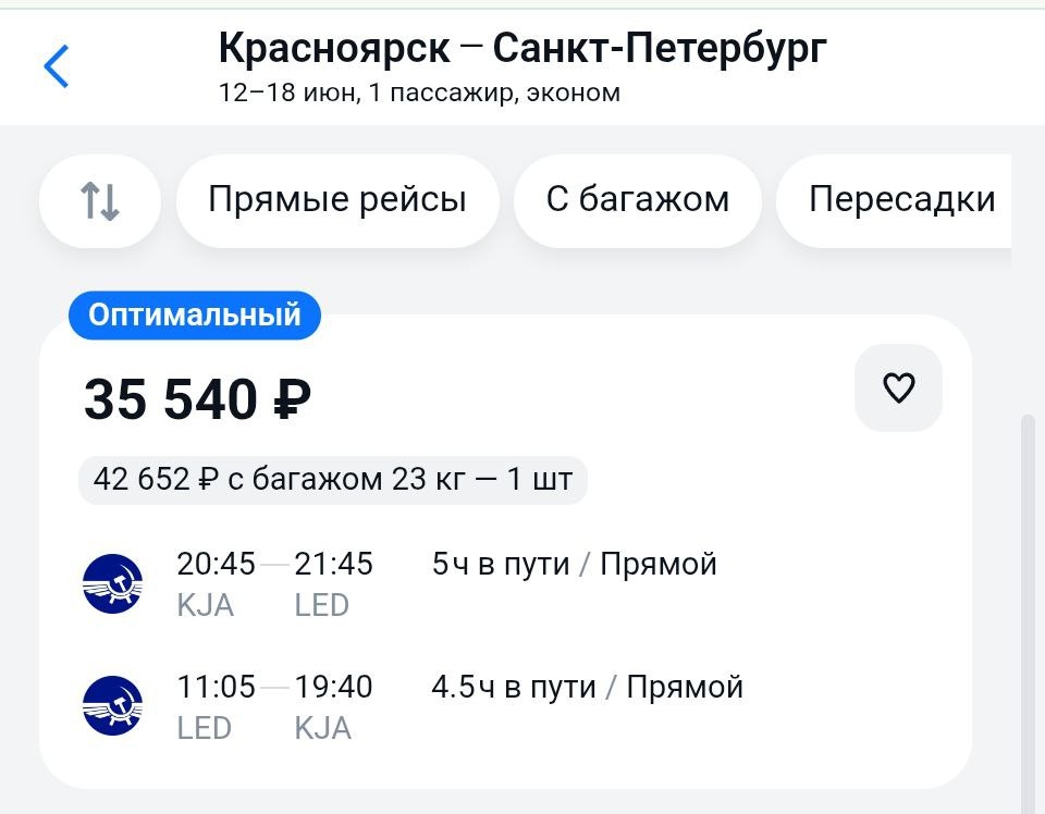 Продолжаем рыдать над летними ценами. От такой Петербург 🤷♀