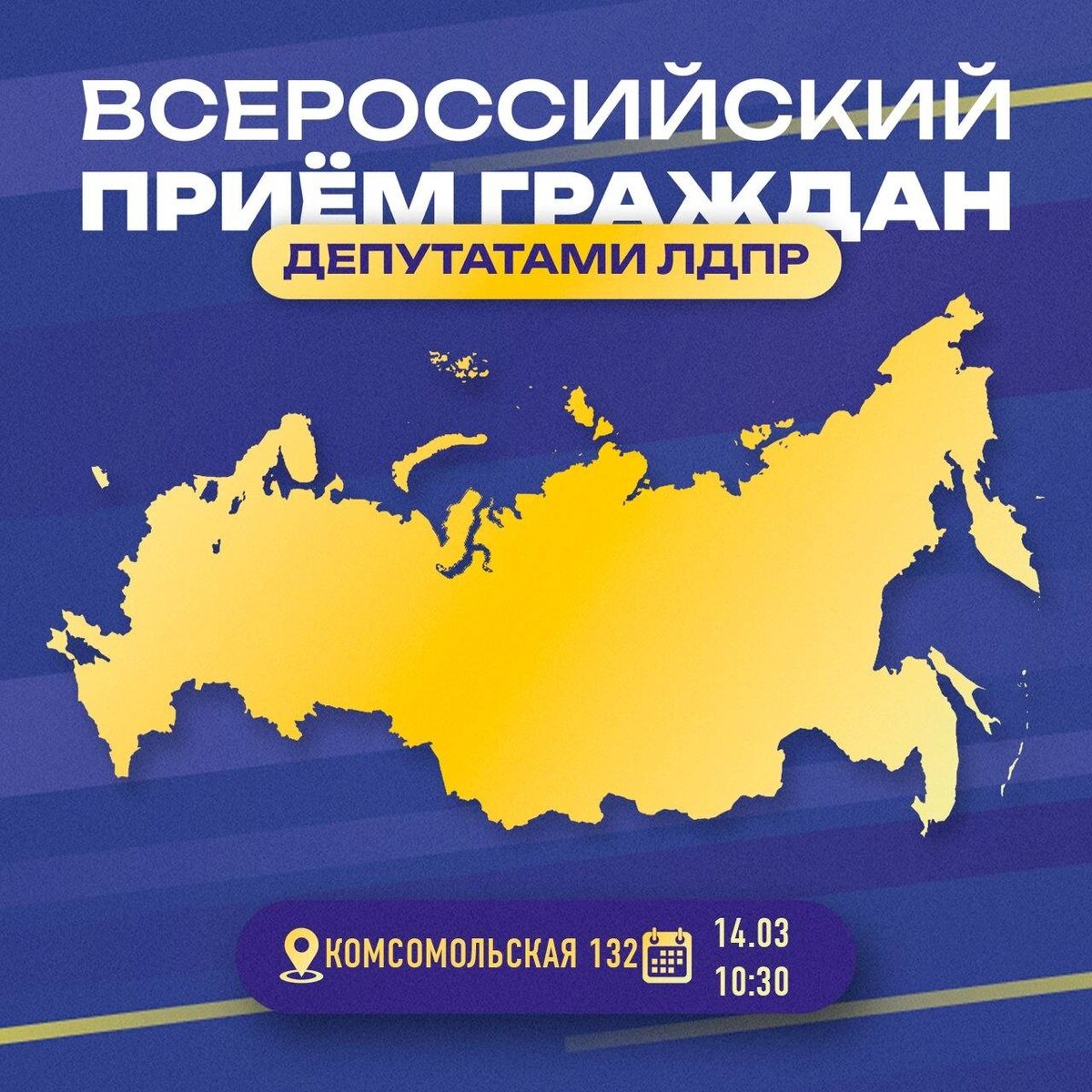 🗓 В субботу, 14 марта, в 10:30 состоится Всероссийский прием граждан. 🗣 Руководитель фракции ЛДПР в Государственном Собрании Республики Марий Эл восьмого созыва Алексей Шерстобитов проведет личную встречу с жителями республики. ✊ Каждый желающий сможет обратиться с проблемой и получить всю возможную помощь от депутата ЛДПР. ✔️ Прием граждан состоится по адресу: г. Йошкар-Ола, ул. Комсомольская 132, штаб ЛДПР. 📞 Для записи на прием звоните по номеру телефона: 621-621