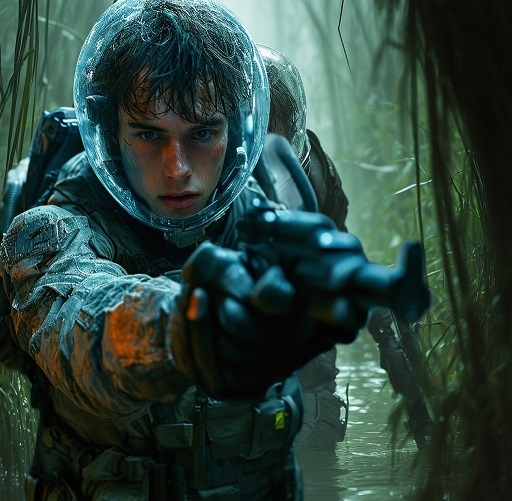 Я бежал и стрелял, но тварей становилось всё больше. Я толкал перед собой девчонку, заставляя бежать быстрее, но она постоянно поскальзывалась и падала. Мерзкие маленькие чудовища были слишком шустрыми, ловко работали хвостами, догоняли. Вода буквально бурлила за нашими спинами. В какой-то момент я решил, что нам несдобровать. Остановился, перевел режим бластера на максимальную мощность и выстрелил в преследователей. Взрыв разметал чудовищ, огромная грязевая волна сбила нас с ног. Вынырнув, огляделся. Девчонки нигде не было. Я в отчаянии стал шарить руками и, слава Богу, нащупал. Поднял её за шиворот и потащил за собой.
