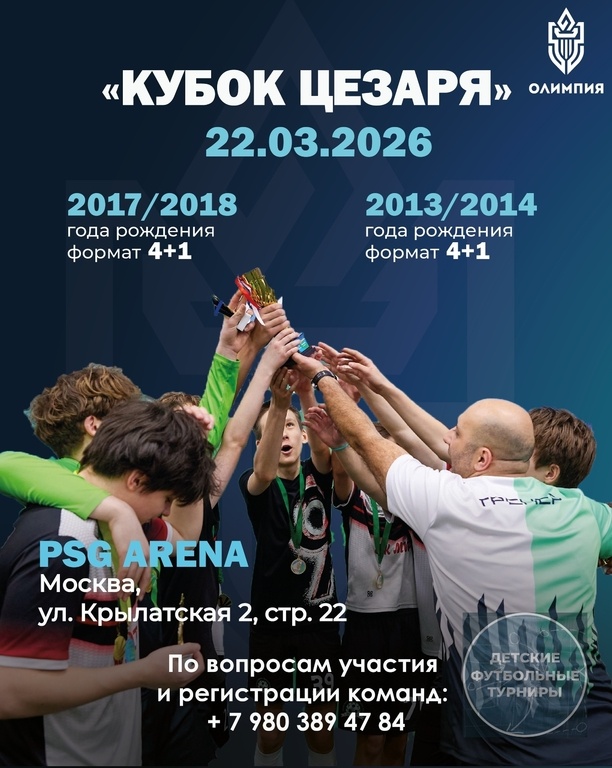 ⚡ ОТКРЫТ ПРИЕМ ЗАЯВОК НА ТУРНИРЫ 22.03.2026🏆 ✅2017/2018 года рождения ⏱15:30 ✅ 2013/2014 года рождения ⏱18:30 📆 22.03.2026 ✔Форматы турниров: 4+1 📍PSG ARENA (Москва, Крылатская 2, строение 22) Что вас ждет на турнире? 🏅 Каждый участник турнира награждается памятной медалью турнира 🔝Лучшие игроки награждаются памятной медалью, а так же статуэткой лучшего игрока ⚽ Игры проходят одновременно на двух полях, что снижает паузы между играми 🕰 Минимальное игровое время на команду 60 минут (это то, что вы точно получите на турнире) 🏟Игры проходят в ТОПОВОМ футбольным манеже Москвы! 📸 На каждом турнире работает фотограф, который сможет сделать снимки лучших моментов игр и награждения! Так же каждый турнир проходит с музыкальным сопровождением и с праздничным настроением! 🅿 Для родителей доступна бесплатная парковка, а так же кафе на территории манежа! 📍 Место проведения турнира: Арена ПСЖ Крылатская ул., 2, стр. 22 yandex.ru/maps/org/n... Для получения более подробной инфо