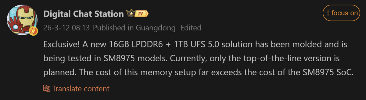 Если вы думаете, что это будет доступно всем, то я должен вас разочаровать. Согласно утечкам, стоимость 16GB LPDDR6 + 1TB UFS 5.0 превышает стоимость самого процессора Snapdragon 8 Elite Gen 6 Pro. Вот почему: